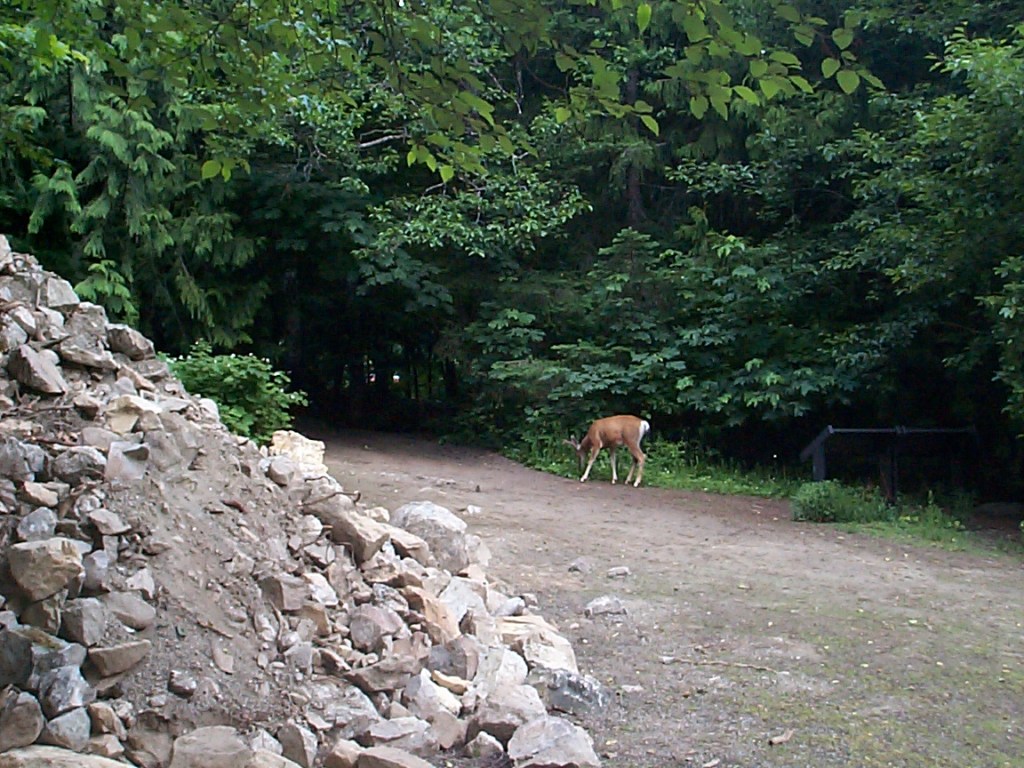 The road then straightened out a bit and all was well again. I stopped at the first campground – Lone Fir at 3800 feet – to stock up on water. Tom and David had already set up camp. They had seen the tandem couple during their ride – they would pass the tandem, then the tandem would catch up and pass them, etc. They invited me to stay with them, but I was running low on food and decided to push on to Winthrop. So we bid our farewells for a safe journey and I gave them my business cards telling about my trip website (glad I made those up).