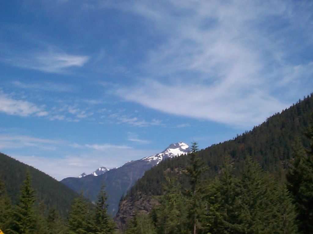 Once cresting Washington Pass the view opens up into a mountain panorama. Pictures don’t do it justice. The road then turns into switchbacks down the mountainside. The wind gusts would almost blow me off the road, forcing me to keep my speed under 30 mph. Then I’d turn on one of the switchbacks, and then I’d have to be careful not to be blown across the yellow line.