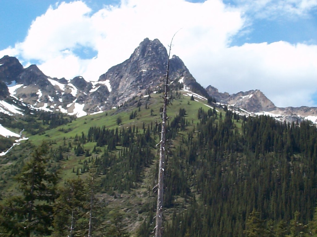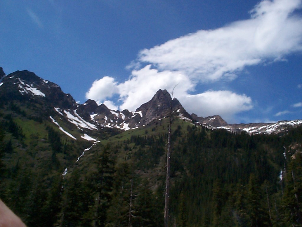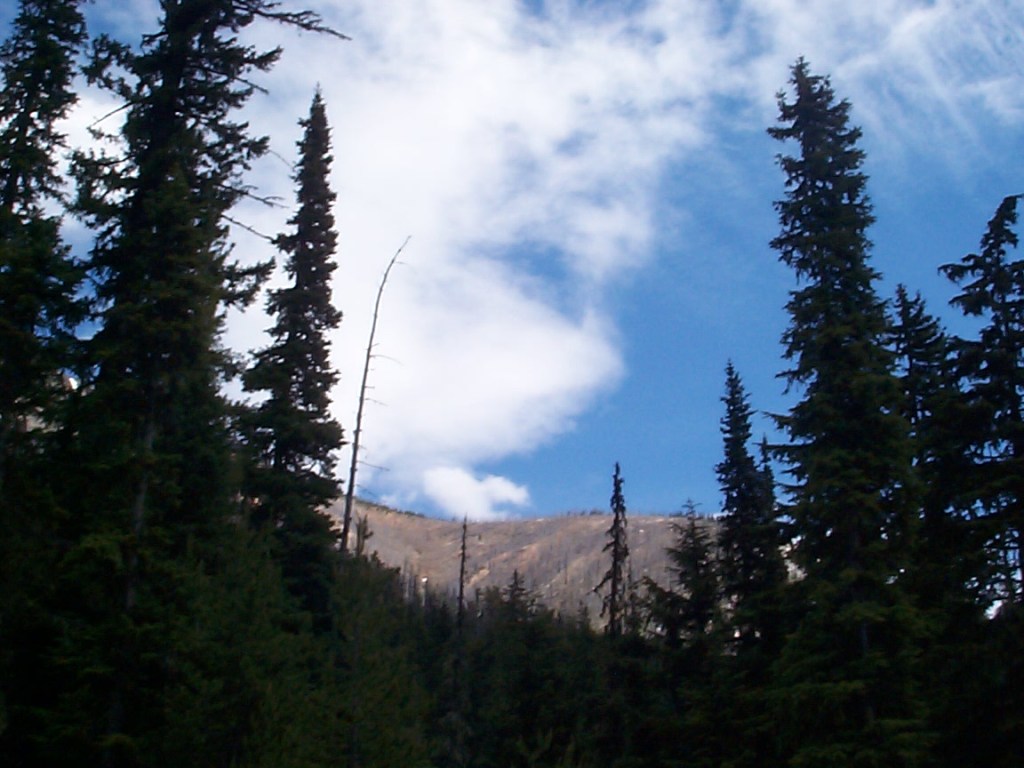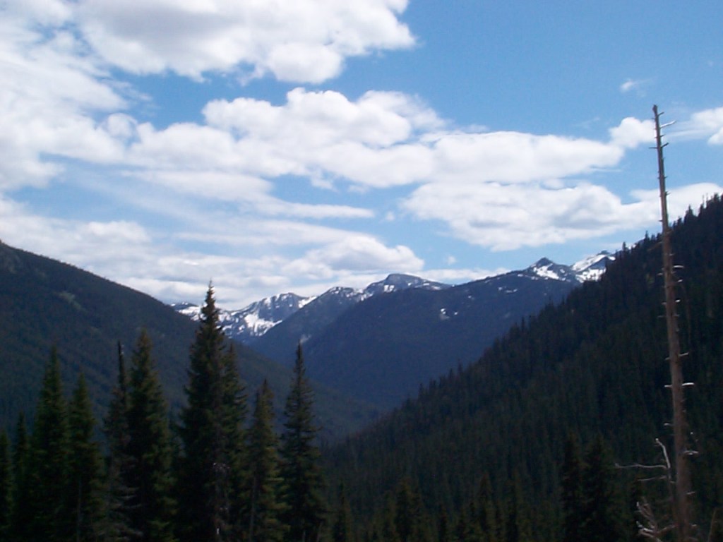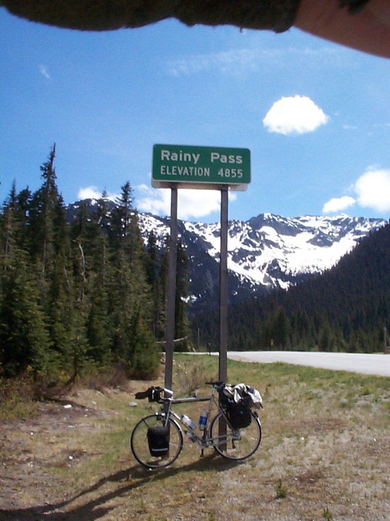 The climb up to Rainy Pass, although scenic, seemed to go forever and ever. I was on the verge of bonking, but managed to eat enough food to prevent that from happening. I had expected the climbing for the day to only be 20 miles. In fact, it was 28 miles from the campground to Rainy Pass, at 4855 feet. I made it to the pass around 2 PM.
