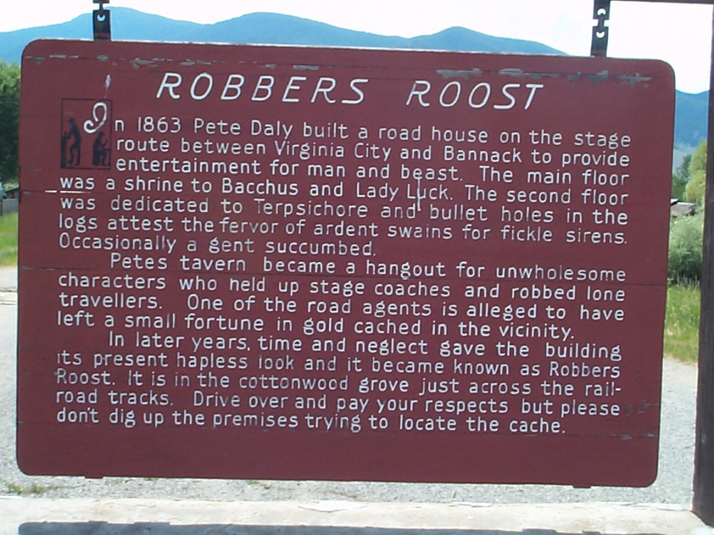 This is one of those rides where it looks flat on the map. In fact, it was a gradual drop from Dillon (5100 feet) to Twin Bridges (4800 feet), then uphill again to Alder (5600 feet). Just before Alder was a historical marker for Robber’s Roost.
