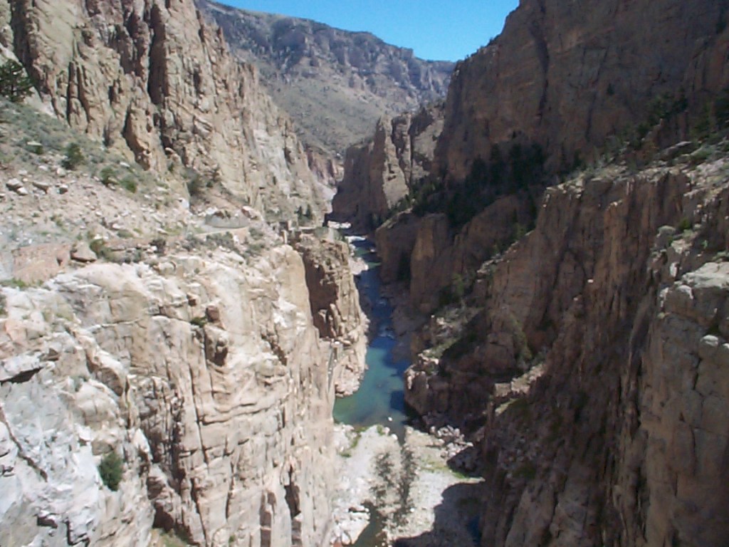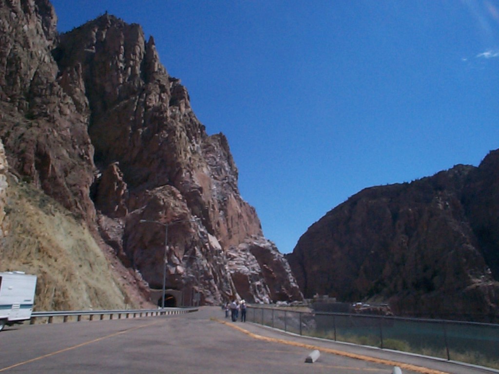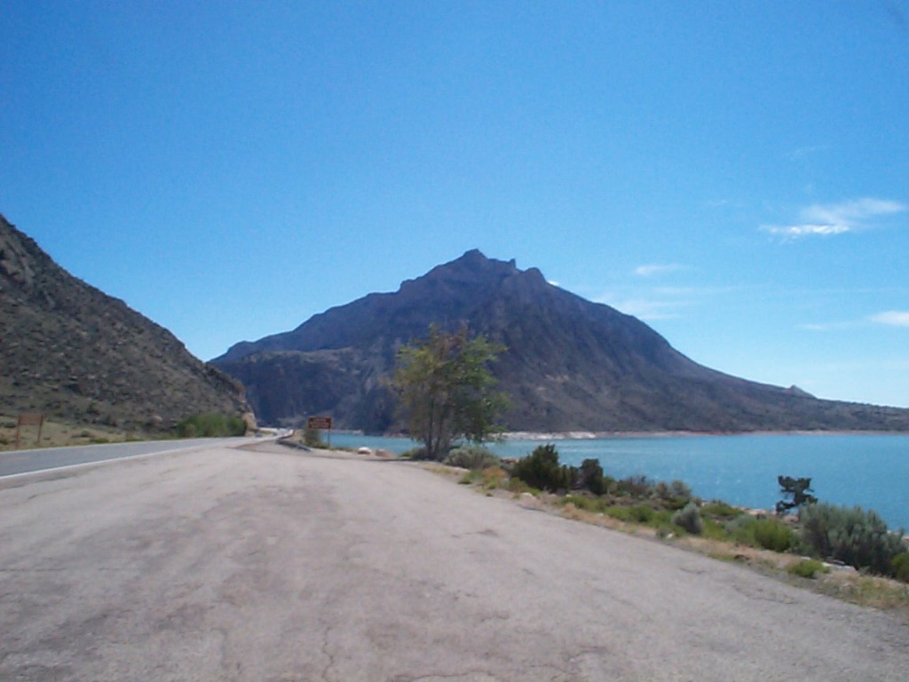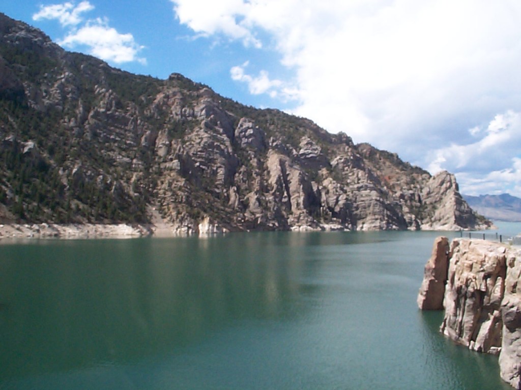 Next was a stop at the Buffalo Bill Dam and Reservoir. This was one of the irrigation projects from the early 1900s to supply water to the towns in the area. Since the dam and the river occupy the only route through the hills, the road goes through a mile long tunnel – fortunately I was going in the downhill direction. In the meantime the tailwind had turned into a headwind through the gap – ugh.