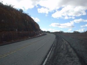 Eventually I reached an unnamed but marked summit at 5700 feet. There was even still some snow on the side of the road. I didn’t get the screaming downhill that I had expected/hoped for on the other side of the summit, instead I was treated to more rollers in a headwind.