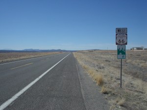 I forgot to mention that yesterday’s 77 miles was a little shy of my expected 84 miles. My cycling computer must be a bit off, or I must have used the most direct I-40 shoulder in a location where I had originally planned to use the old highway. Today’s planned route is 89 miles, all of it on the old Route 66 with no turns, so I would find out for sure whether or not the computer is the issue.