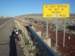 Just like yesterday I had started off the day with my cold weather gear. But more importantly, I had a tailwind this time, and although I didn’t know exactly what was waiting for me in the middle, the route would have a net downhill, starting at about 5200 feet and ending at about 3300 feet.