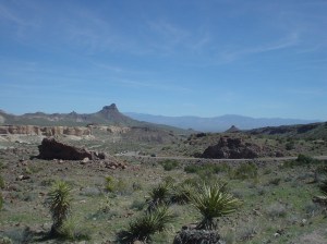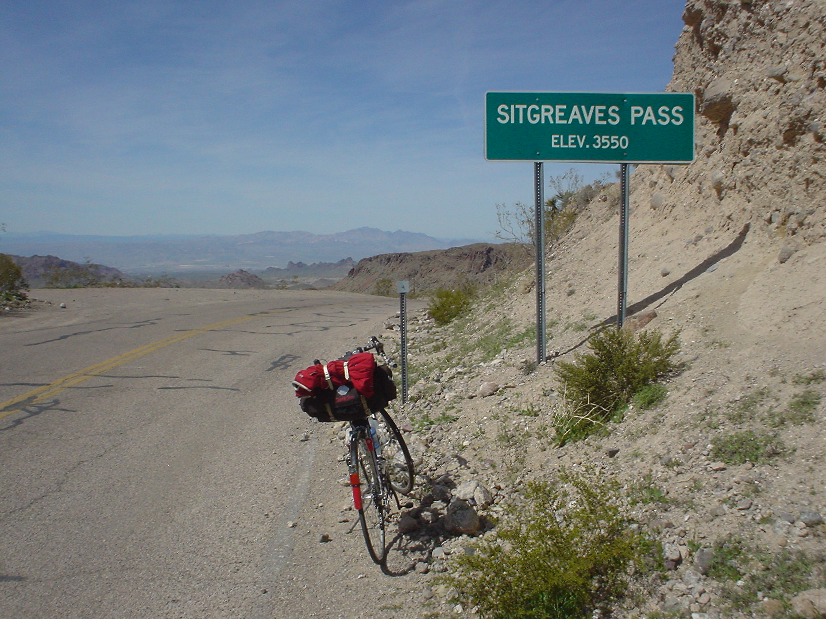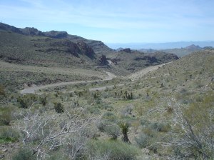 Then the road started going uphill, and now I actually had to pedal through the bumpiness. That’s when I started thinking that if I had to do 109 miles of this the next day, I would just hang it up in Needles. (Next time I’ll listen to Lon of his Route 66 Pac Tours when he says to use 32 or wider tires!) Then, as if almost on cue, the pavement got a little better – not great, but on par with the rest of the route.