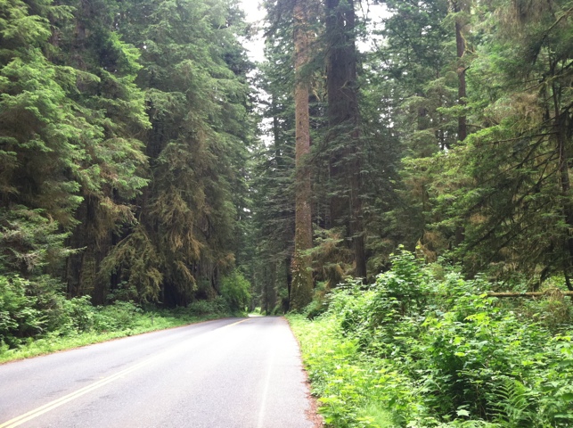 I heard a whole bunch of information that this would be a bad section because there’s no shoulder. But none of these folks mentioned that it was TWO uphill lanes instead of one – which is a HUGE difference in the cyclist’s favor. Furthermore, traffic was very light, even on a holiday weekend, partially because there’s no logging trucks anymore. (Though I must say when I was riding through eastern Washington on my cross-USA tour ten years ago, the logging truckers were by far the best drivers on the narrow curvy roads.) As long as I wasn’t riding the white line, traffic would just change lanes to pass.