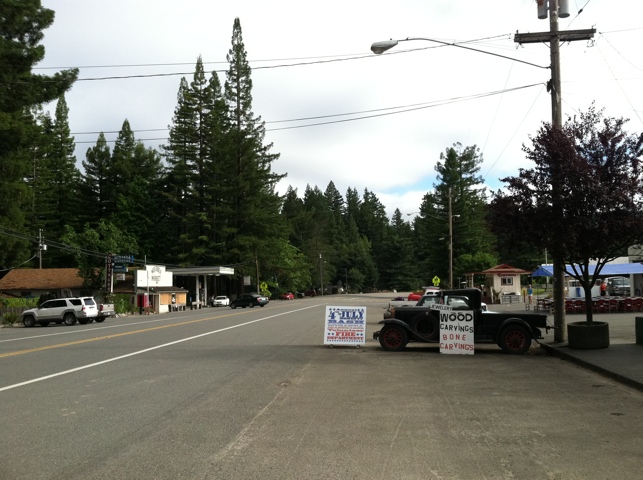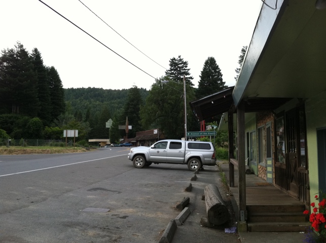 I told Rex and Roger I’d wait for them at the restaurant in Myers Flat. But there was no restaurant there (ummm, maybe I should have checked inside the fancy looking inn…), so I scrounged up what I could from the market. Then the coffee shop started setting up, but after a “we’re not open yet” and “you’re in my way” I hopped back on the bike and continued south.