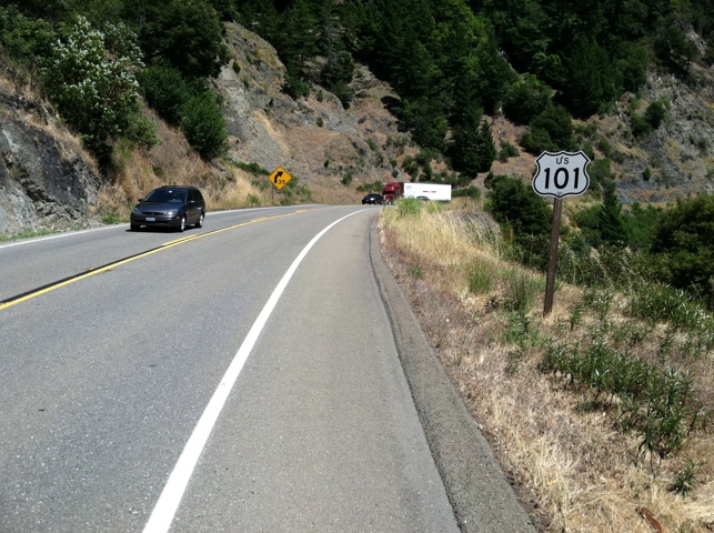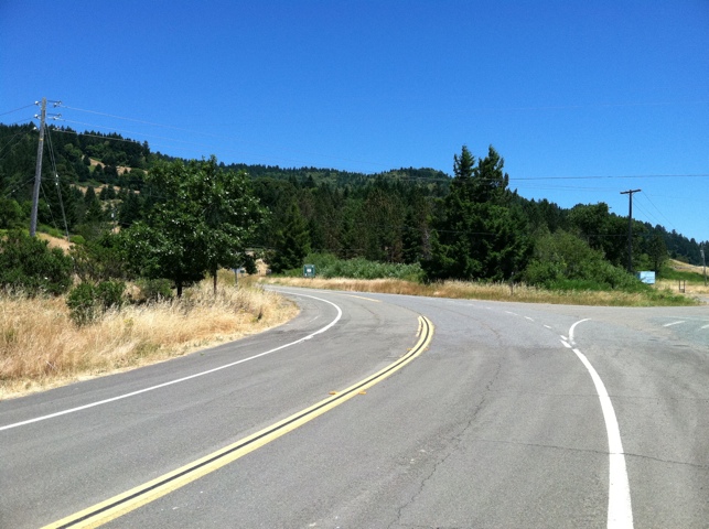 After finishing breakfast in Miranda, I kicked back on the outdoor patio while waiting for some of the other riders. The two Canadians (now I know their names, but I’m not saying) arrived first, and so I started riding with them. Amazing how the ride has now taken on more of a social aspect, with two groups of two, in addition to myself, all having the goal to arrive in San Francisco around the same time. But it means that I’ll be camping the rest of the rest of the way, as well as less time for updates during the day – but the tradeoff is worth it.