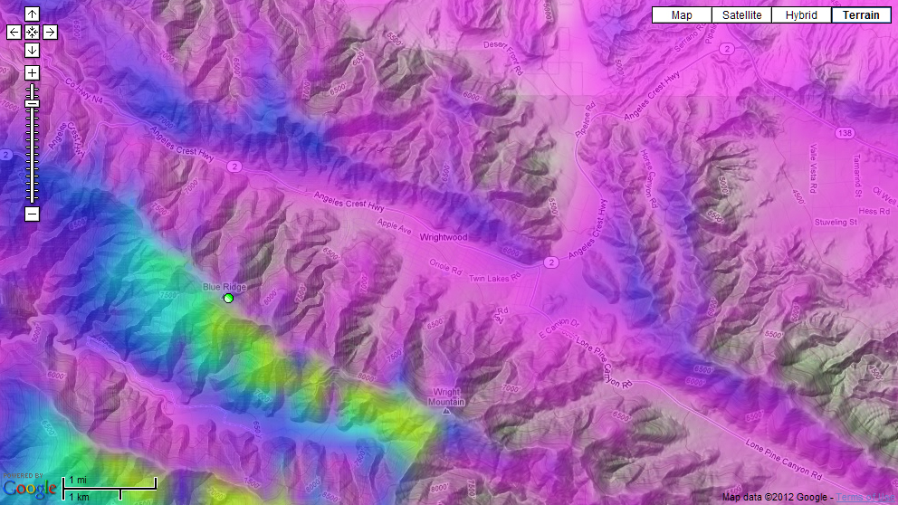 Here’s a closeup of the Wrightwood area. All purple, indicating fringe reception area. But better than nothing.