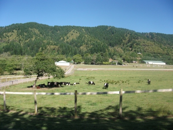 At Ophir, the Adventure Cycling route detours off US101 onto Cedar Valley Road. That was a welcome break from the wind and traffic, though at the expense of another hill. Since we were at about mile 75 or so on the ride, we took it real easy up the hills. The route passed a golf course, a few homes, and a few farms.