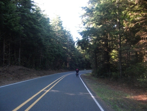 The route stayed off US101 through North Bend and Coos Bay. After a few mile warmup on the flats, we turned onto the hills of Seven Devils Road. Grades were usually in the high single digits, with the occasional 12-14%. We were wondering how the three guys from Illinois were going to do today.