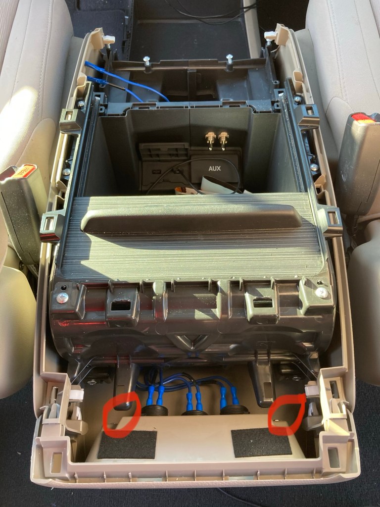 Also, when the console cover was off, I took the opportunity to put in screws to hold the plastic plate with the middle row USB ports, which would previously pop out on occasion.