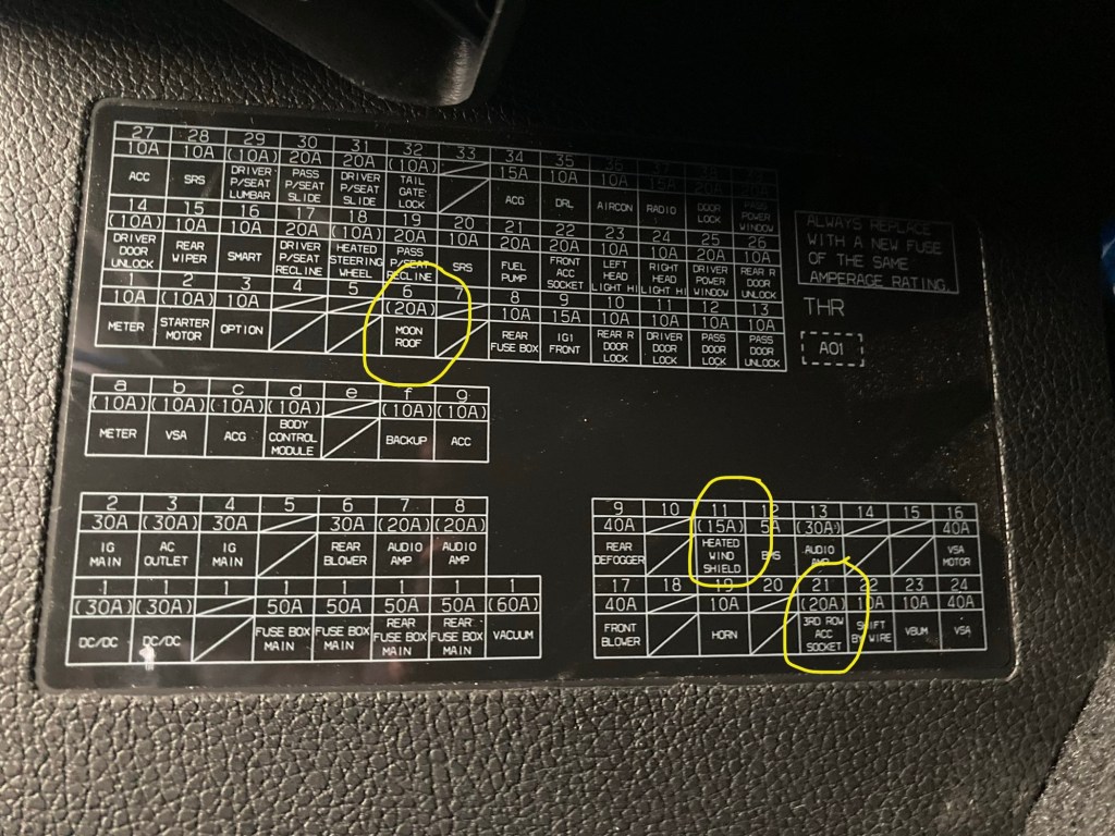 Here’s where I found power – three unused locations (at least in my model) in the front fuse box to use with my fuse taps.