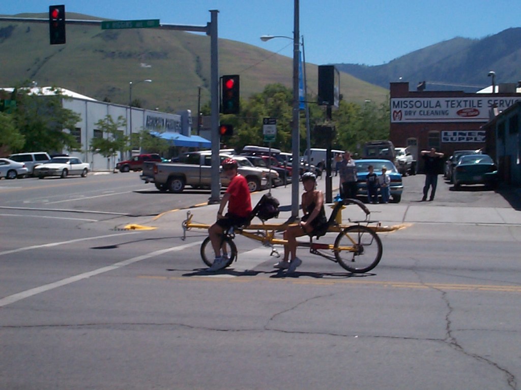 Missoula is the headquarters of the Adventure Cycling Association, the organization that researches and provides detailed maps for long distance bicycle touring routes. Therefore, it was no surprise that I saw many other cyclists at the local campground. Dave had taken my original planned route through Washington and Idaho, riding at a really fast pace of 90-100 miles per day. Geoff and Phyllis had met up from a magazine advertisement and were planning on heading east together. I took some time to visit the Adventure Cycling offices – I got to use their free internet connection, and they got a picture of me which they might put in a future issue of the monthly magazine.