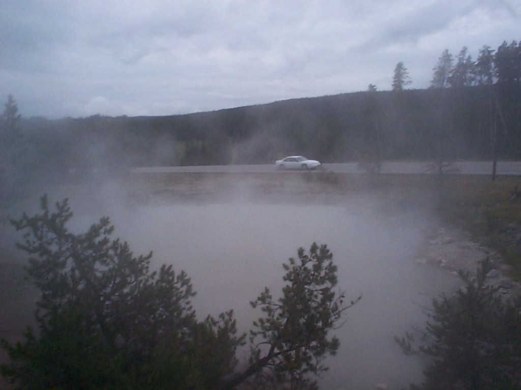 Yellowstone seemed to have weather of its own. One day I had to wait out driving rain for two hours before setting up camp. Luckily there was a tarp hanging up over the picnic table, which I had shared a guy who had cycled from New Jersey with his two children, ages 10 and 14.