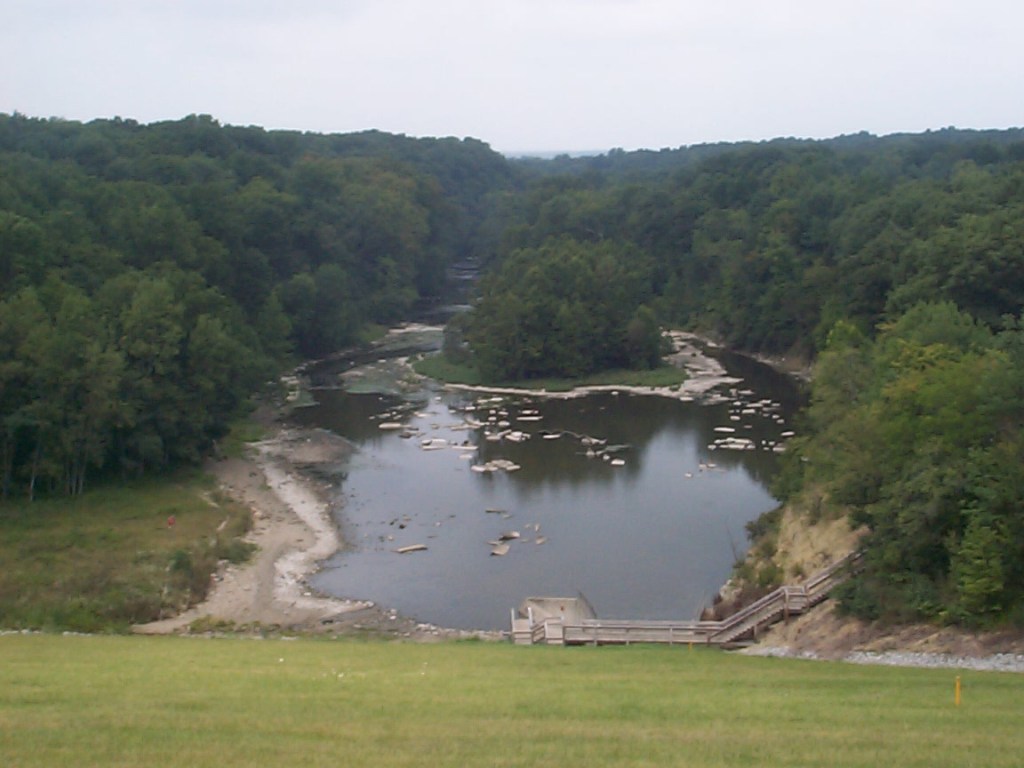 But the Adventure Cycling maps provided an excellent way through all of the little-traveled farm roads. Trying to explore them on my own would have been fruitless, since I wouldn’t know which ones would turn to dirt or even suddenly end. The route even went through a state forest and dam – hills and trees in Indiana, who would have thought it?