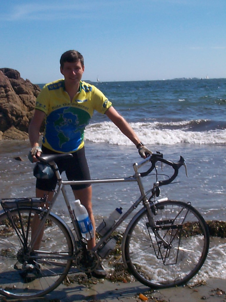 Ken joined me for the ride for the last few miles to some decent ocean north of Boston in Beverly, where we did the ceremonial front wheel dipping. 3959 miles in 70 days! I finished! Yippee!